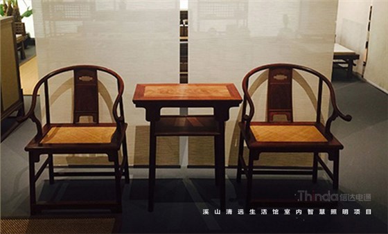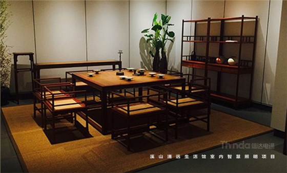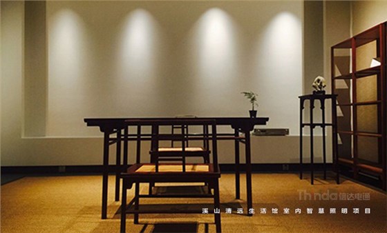 溪山清遠生活館是其公司在北京朝陽區設立的明式、宋代家具主題生活館。溪山清遠探究家具,是探究一種回歸。俗韻已行,塵網誤落,陶淵明欣慨之意,宜適今日。看紛紛擾擾,無休無歇,勞心廢形,永無止息。溪山清遠就是在居住意境上去建設一條回歸的曲徑,精簡,守靜,歸真。信達科技是溪山清遠生活館室內空間照明的設計及施工、控制系統一體化服務單位。