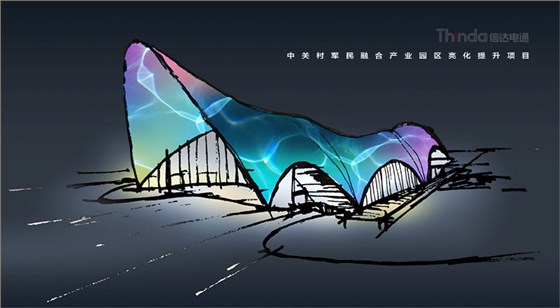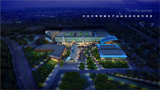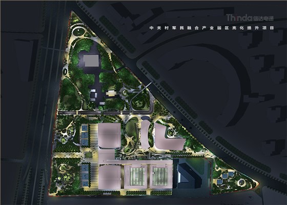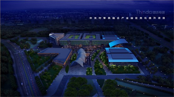 中關(guān)村軍民融合產(chǎn)業(yè)園區(qū)的亮化設(shè)計主要以建筑燈光為主體設(shè)計方向,用燈光的形式突出建筑結(jié)構(gòu)特點,突出時尚、創(chuàng)新、科技、新潮的融合產(chǎn)業(yè)園。園區(qū)建筑結(jié)構(gòu)整體簡潔、大氣,信達電通利用光影效果及景觀元素,打造東西、南北軸向的建筑縱身層次,整體以各種幾何形體組合而成,燈光在設(shè)計的同時尊重建筑本身的理念,優(yōu)化夜景氛圍,通過塊與面的結(jié)合,塑造一個大氣魄、大追求的文化產(chǎn)業(yè)新品牌。
