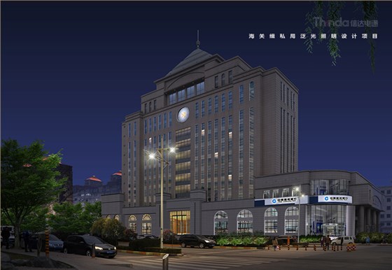 節能模式下的海關緝私局泛光照明,體現莊重沉穩的感覺。