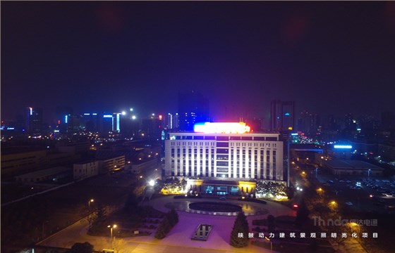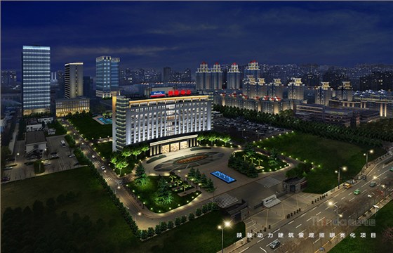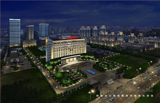 在陜西鼓動力的建筑景觀亮化改造中北京信達(dá)電通通過照明的亮度和顏色突出陜鼓動力的建筑輪廓,燈具造型和燈光顏色與陜鼓的商業(yè)用途和建筑外觀相結(jié)合,進(jìn)而加強(qiáng)陜鼓的渲染力。