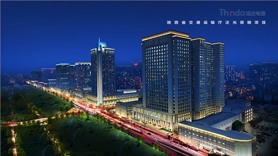 陜西省交通廳是2016年西安高新區整體區域照明設計規劃的一份子,電通根據建筑特點以及所處的地理位置結合周邊的建筑和景觀,對陜西省交通運輸廳進行照明設計改造工作。設計后的夜景照明效果強調天際線效果,同時增加建筑立面層次感。暗區與明區想映襯,凸顯建筑主體。