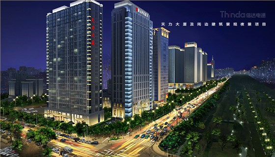 信達電通照明設計團隊現場實勘,發現目前西安天力大廈建筑夜景照明缺失,無法形成整體的夜景照明體系,而且西安天力大廈的建筑照明手法單一,沒有層次感。針對現場實勘情況和目前的夜景照明存在的問題,信達電通照明設計團隊對西安天力大廈做了整體的建筑景觀亮化照明設計,首先,改善目前的照明缺失,增加天力大廈建筑立面及頂部的照明增加夜景照明的層次感,強調天際線效果。