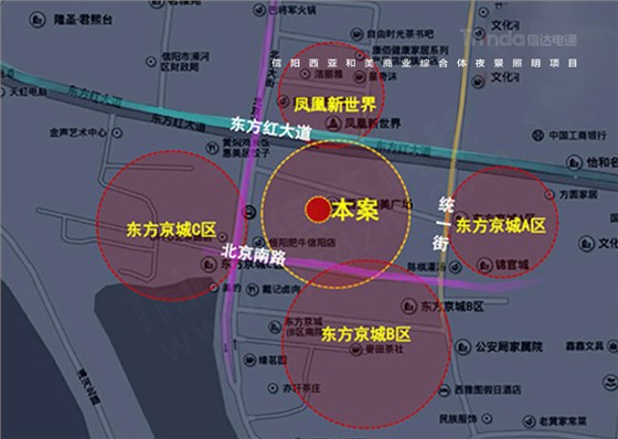 西亞和美商業(yè)廣場地處于河南省信陽市,位于東方紅大道、南臨北京南路、東臨統(tǒng)一街,周邊有鳳凰新世界、東方京城、軸線之廊,位置優(yōu)越,交通便利。這里信陽人民平時生活娛樂與購物餐飲的地方,也是IGA中國區(qū)優(yōu)秀零售商。目前商業(yè)廣場夜景照明已經(jīng)跟不上整體的商業(yè)需求,急需進(jìn)行照明設(shè)計(jì)施工改造升級,為此信陽西亞和美業(yè)主聯(lián)系到信達(dá)科技,雙方根據(jù)本案開展照明設(shè)計(jì)施工合作。