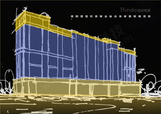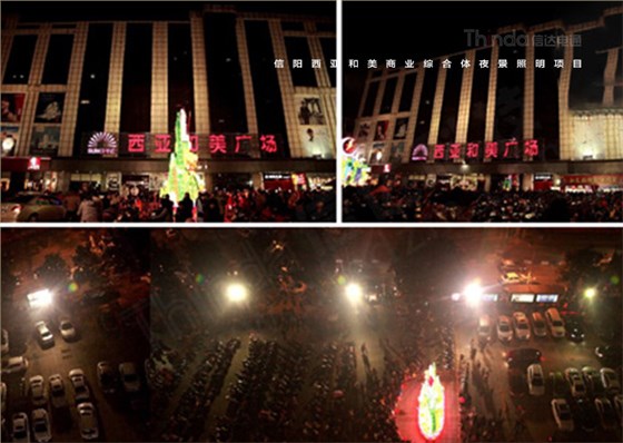 信陽西亞和美商業(yè)樓廣場照明設(shè)計(jì)平日效果及節(jié)日效果: